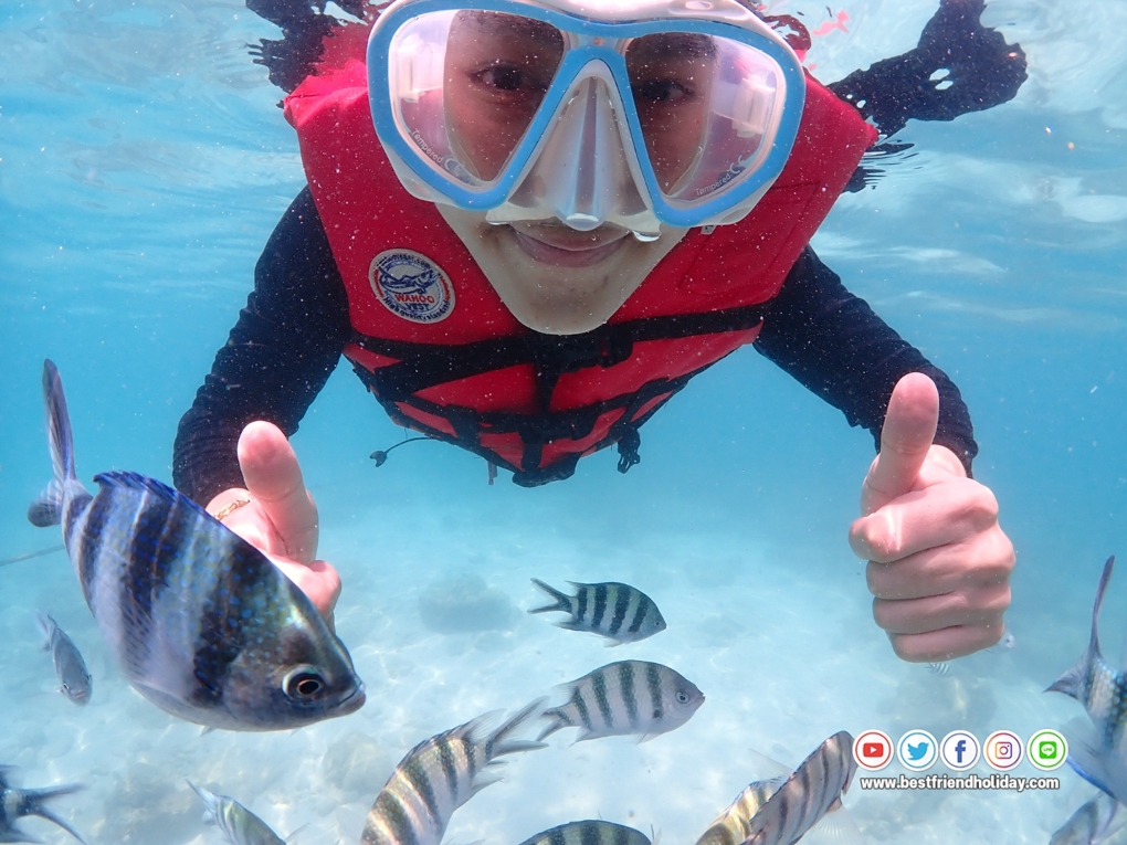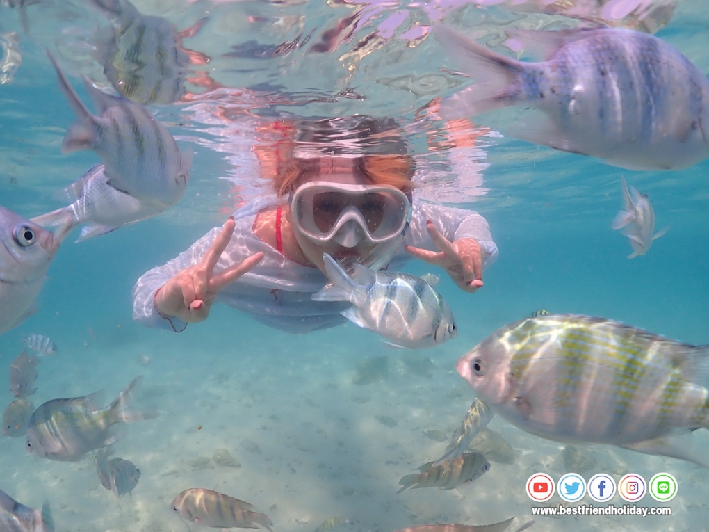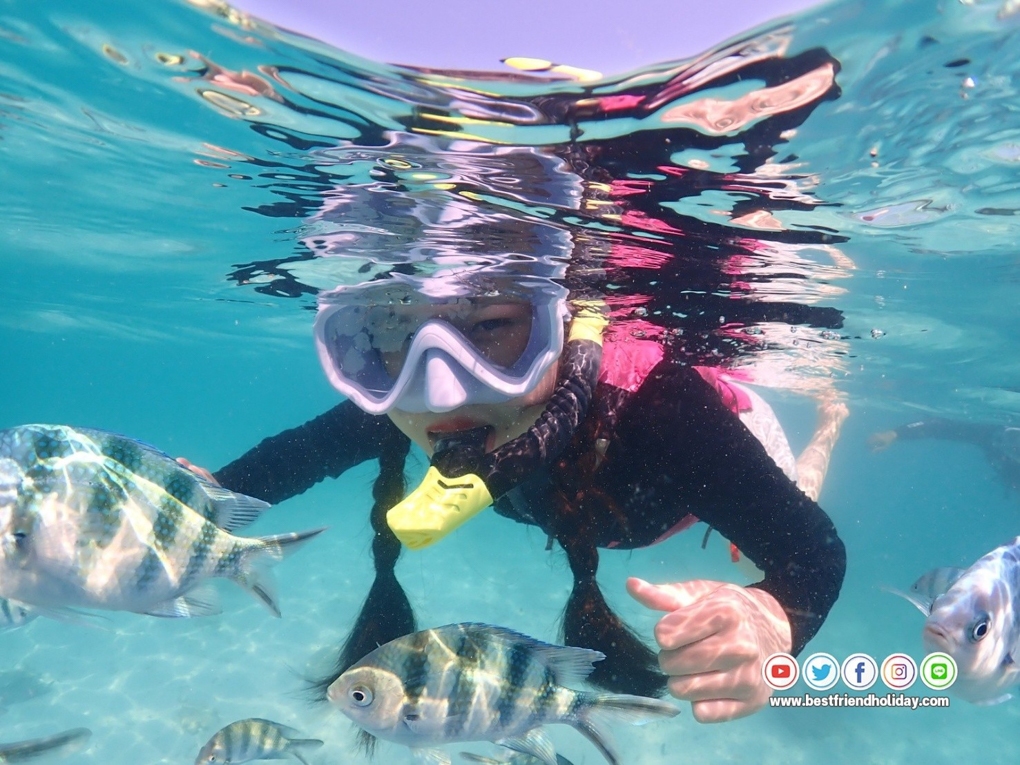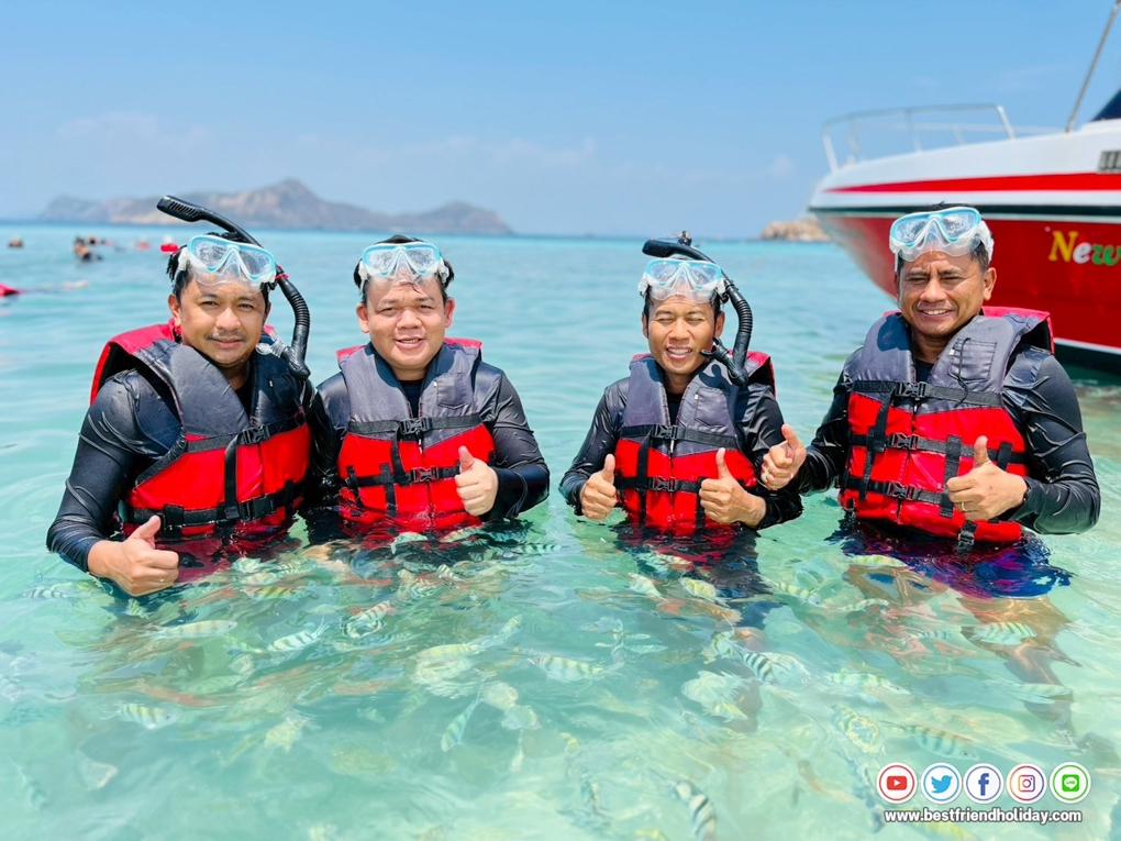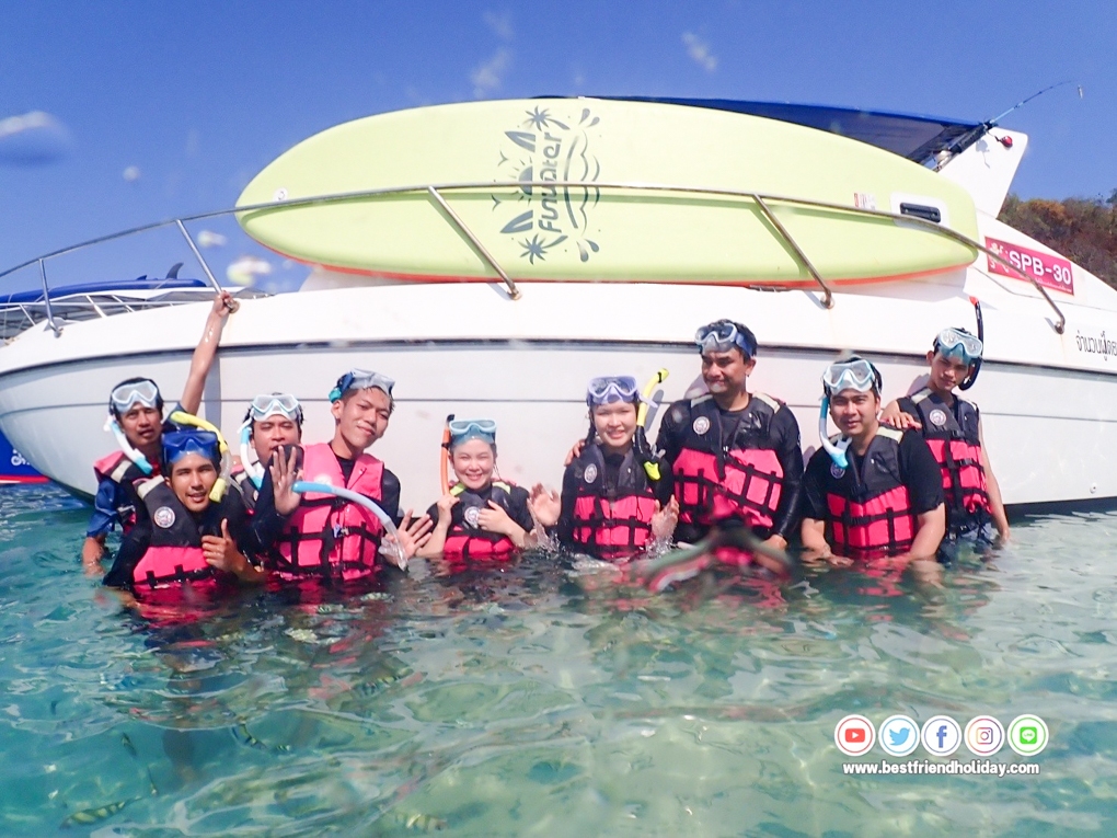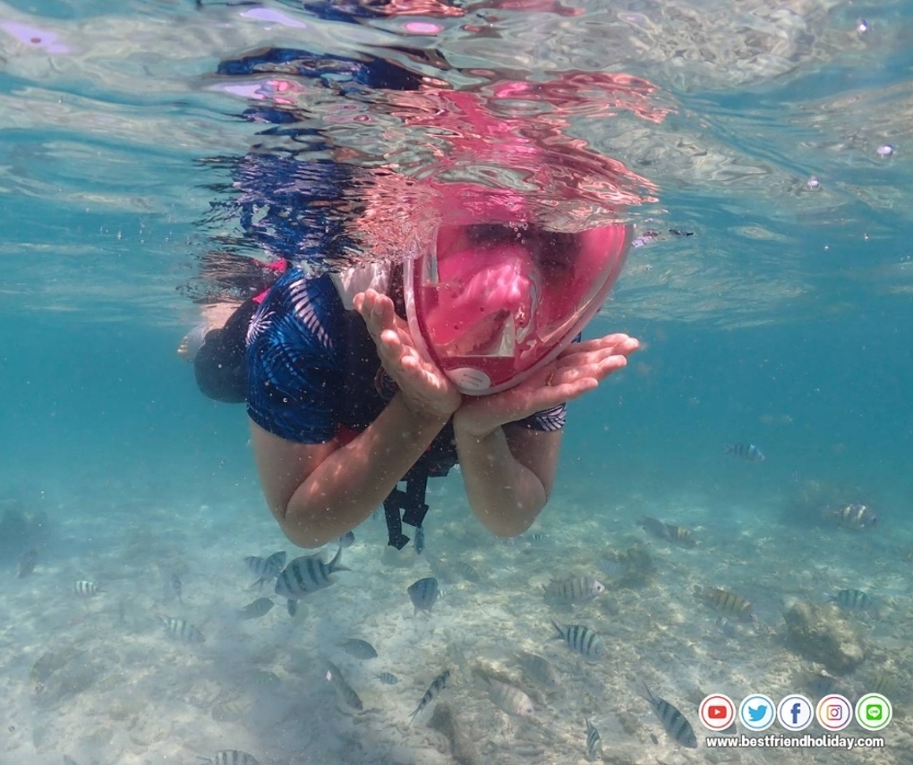 บริการน้ำดื่มบนเรือฟรี หรือหากลูกค้าต้องการนำเครื่องดื่มมาเอง ก็สามารถนำมาได้ นอกจากนี้เรายังมีเจ้าหน้าที่สอนดำน้ำตื้นให้กับลูกค้า ฟรี..อุปกรณ์หน้ากากดำน้ำ