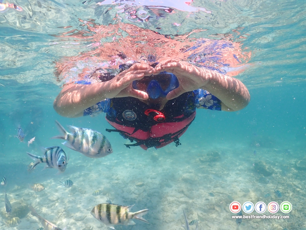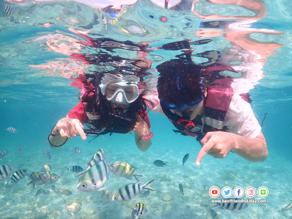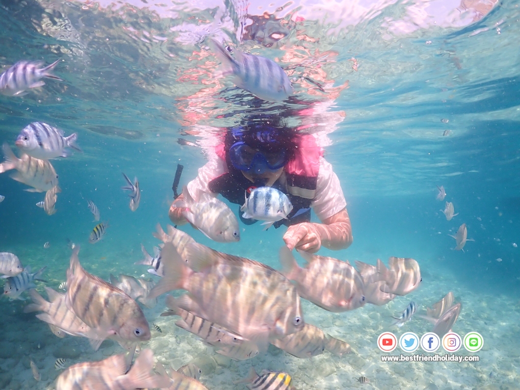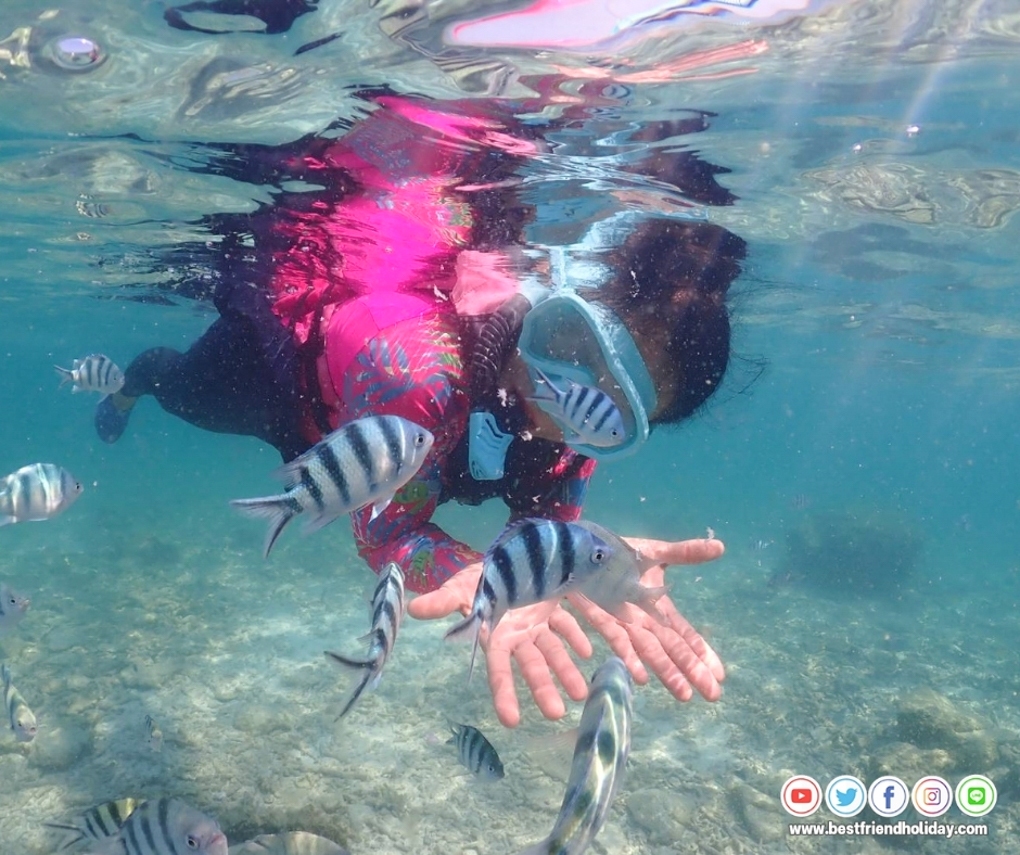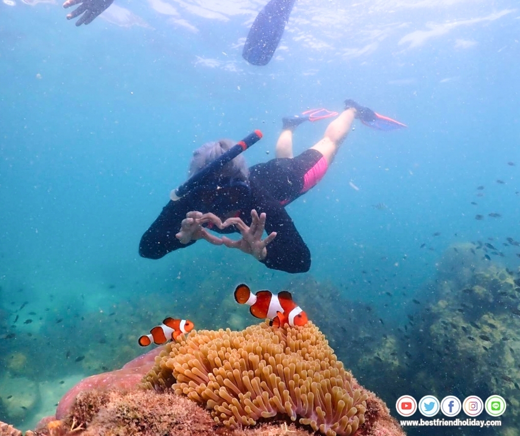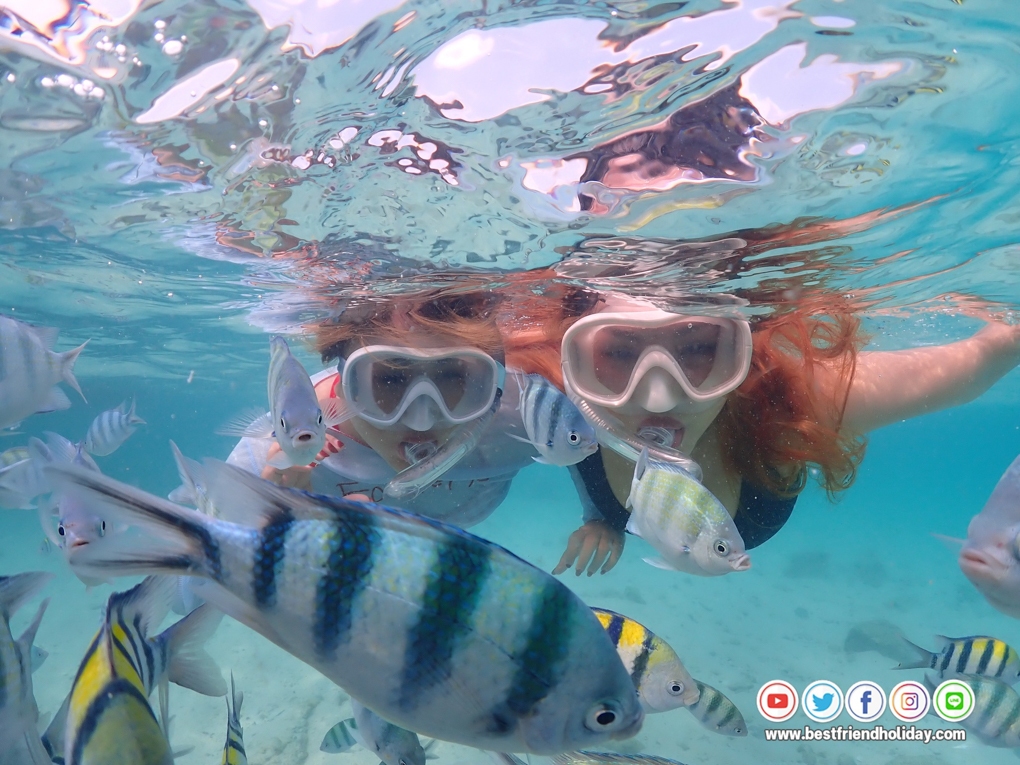บริการน้ำดื่มบนเรือฟรี หรือหากลูกค้าต้องการนำเครื่องดื่มมาเอง ก็สามารถนำมาได้ นอกจากนี้เรายังมีเจ้าหน้าที่สอนดำน้ำตื้นให้กับลูกค้า ฟรี..อุปกรณ์หน้ากากดำน้ำ